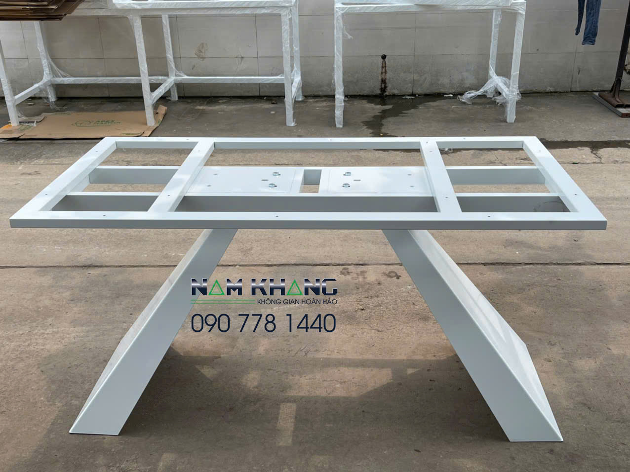 Chất liệu : chân bàn thép tấm 3,5 ly tạo hình , bệ đỡ sắt hộp 25x50 dày 1,2 ly