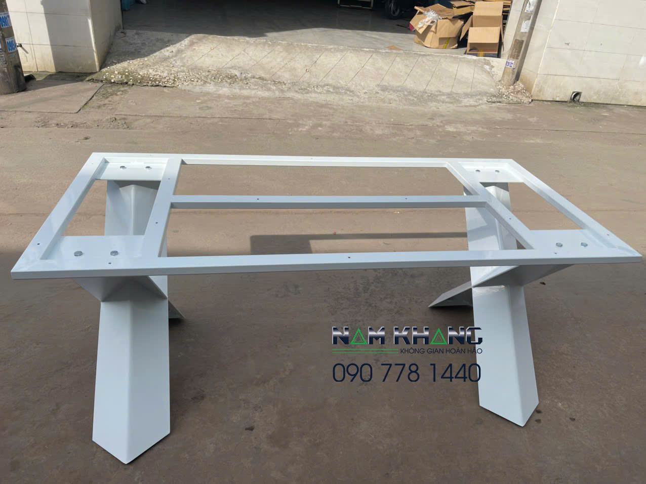 Chất liệu : chân bàn thép tấm chấn tạo hình ,bệ đỡ là hộp 25x50